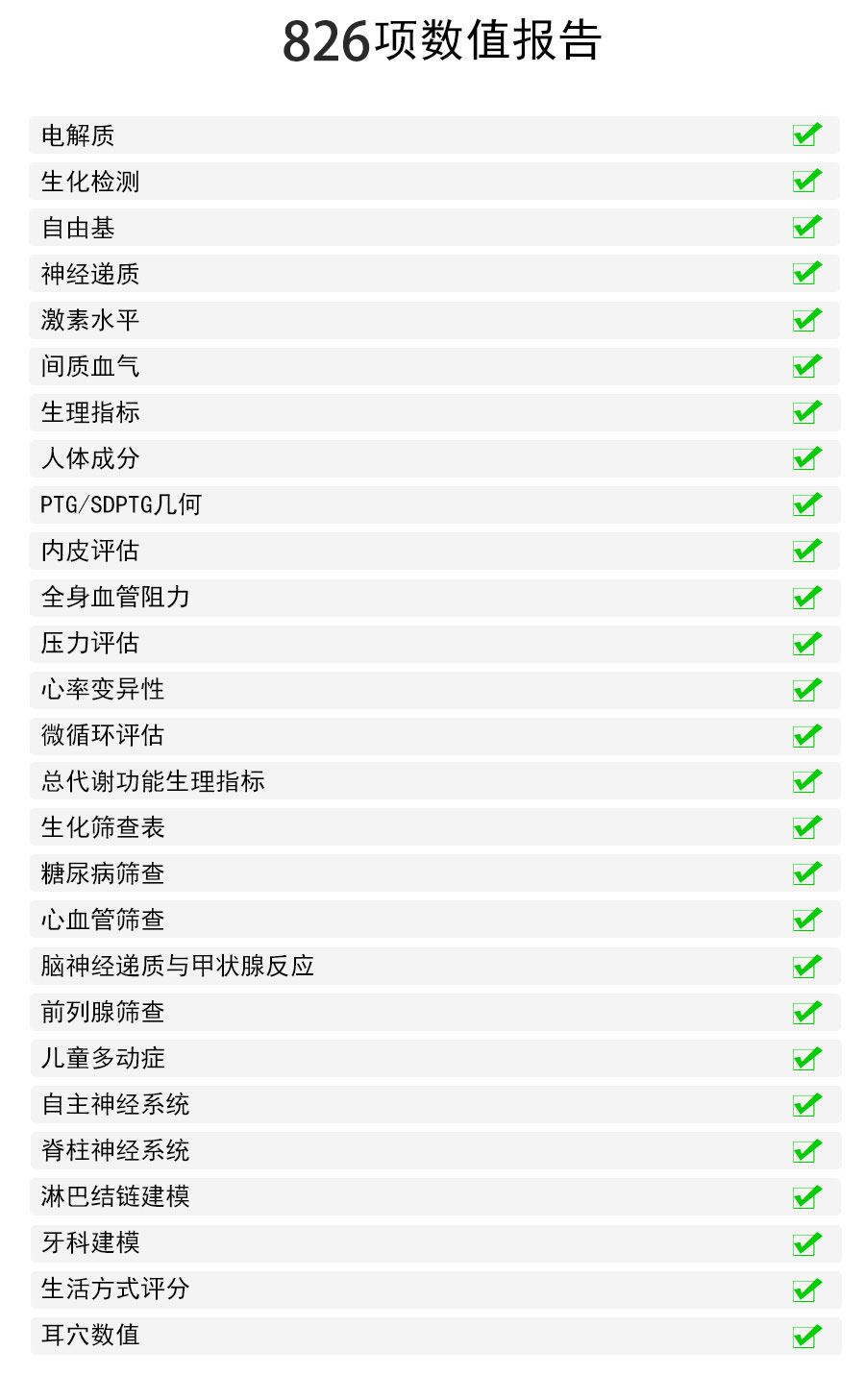 補足傳統(tǒng)檢測技術(shù)無法檢測到的如:植物神經(jīng)、腎上腺、全身淋巴系統(tǒng)、自由基、神經(jīng)遞質(zhì)、中醫(yī)經(jīng)絡(luò)等。 (以上在臨床上均靠臨床醫(yī)生的經(jīng)驗或者排除法)。
